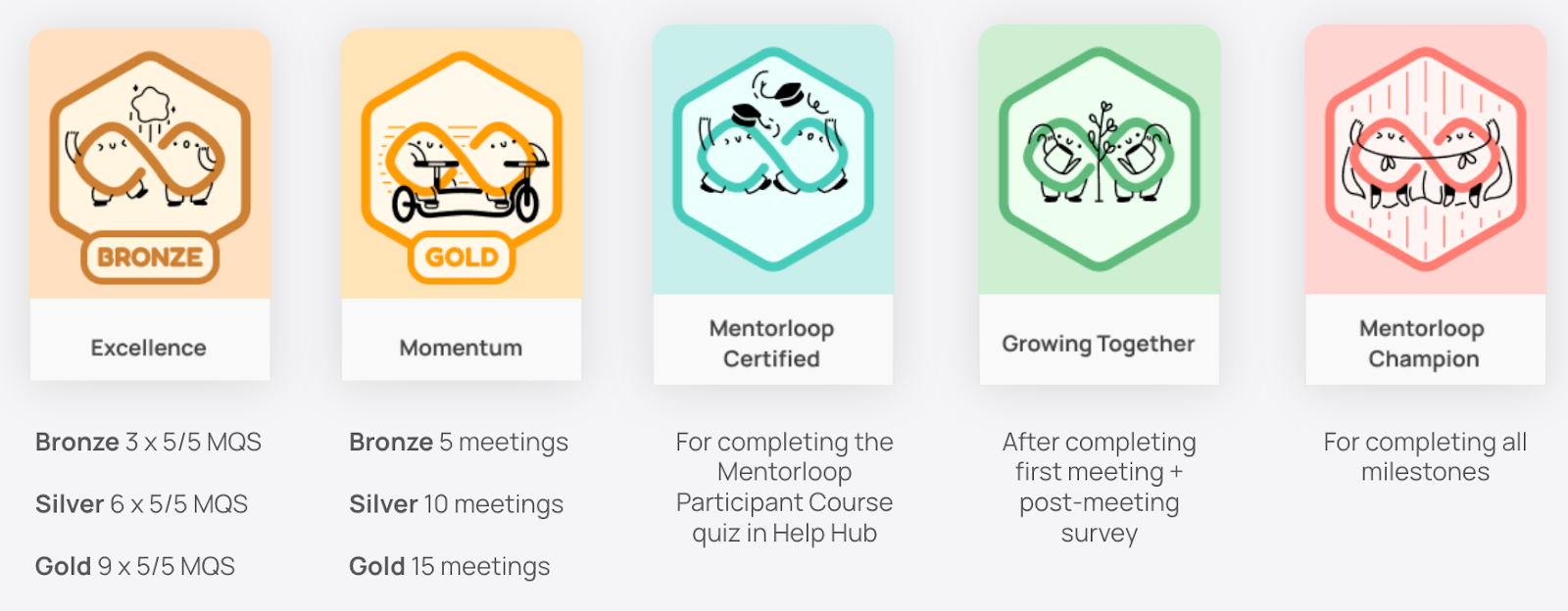 - Mentorloop Certified: For completing the Mentorloop Participant Course quiz in Help Hub