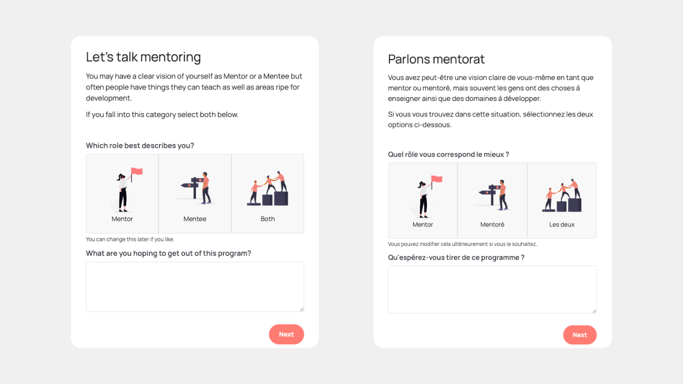 Mentorloop now supports multi-language signup forms, allowing programs to register participants in more than one language.
